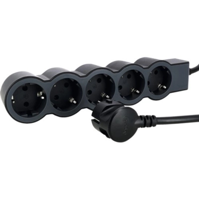 Кількість розеток - 5, євророзетка із заземленням (Тип F), Довжина кабелю - 1.5 м, Колір - чорний