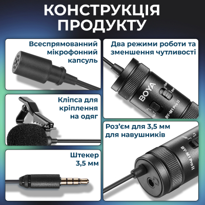BOYA BY-M1 Pro II має вбудований роз'єм для навушників 3.5 мм, що дозволяє в режимі реального часу моніторити власний голос під час запису (функція доступна при підключенні до смартфона).