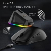 • Високопродуктивна миша Ajazz AJ159P MC пропонує гнучкі можливості під'єднання: дротовий режим USB-C, 2.4GHz і Bluetooth. До комплекту входить Type-C кабель, який забезпечує швидке та ефективне заряджання. Перемикання режимів здійснюється за допомогою кнопки на задній стороні миші.