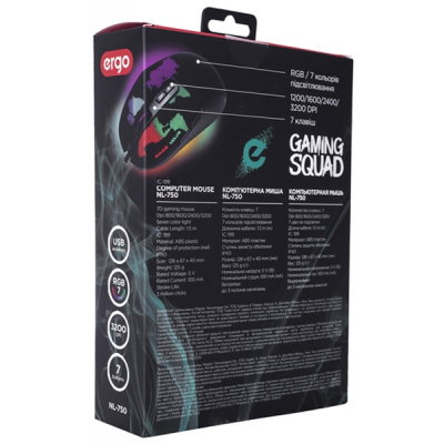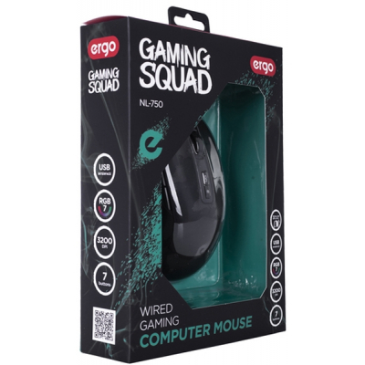 Оптична миша ERGO NL-750 обладнана мультимедійними клавішами «Вперед» і «Назад», які полегшують процеси гри, а також зручним прогумованим колесом прокрутки. Кнопки витримують понад 3 мільйони натискань. За допомогою клавіші перемикання DPI маніпулятор чудово проявляє себе під час гри.