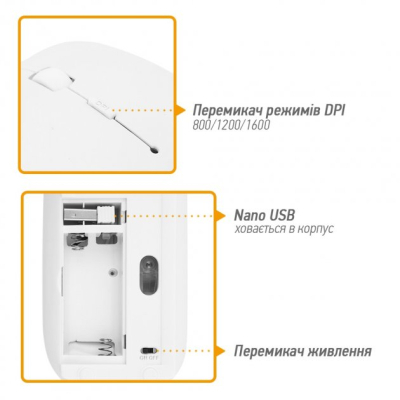 Для зручності транспортування і зберігання передбачений вимикач живлення й ніша для USB-приймача.