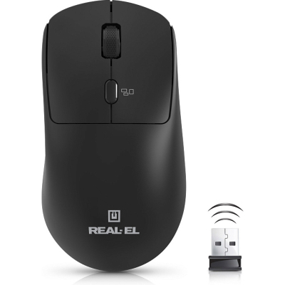 Real-El RM-317W — це практична Бездротова миша, створена для стабільної роботи в домашньому та офісному середовищі. Завдяки сучасній технології зв’язку 2.4 ГГц модель забезпечує впевнене підключення без затримок і збоїв, зберігаючи стабільну роботу навіть на відстані до 10 метрів. Такий формат підключення гарантує свободу рухів і чистий робочий простір без зайвих кабелів.
