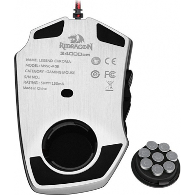 Обойма на 8 знімних тягарців (по 2.5 г кожен) розміщується на дні миші. Гравець легко відрегулює оптимальну вагу миші відповідно до індивідуальних переваг, а також зможе змінити центр ваги, переміщаючи важки в різні положення.