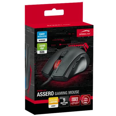 Клік за кліком: Завдяки вражаючому дозволу 3.200 dpi і швидкої інсталяції без драйверів ASSERO є надійним партнером у справі підвищення рівня. Завдяки симетричному дизайну пятикнопочна миша відмінно лежить в руці і в рівній мірі підходить для правшів і лівшів. Навіть в ході потужних оргій руйнування підсвітка колесика і логотипа просто приковують погляд до ASSERO. М'яко пульсуюча підсвітка автоматично змінює наступні кольори: Midnight Blue, Passionate Pink, Volcano Red і Tyrian Purple. А підсвітка колесика миші також вказує на режим dpi. Геніальний бонус: Між партіями мультимедійний режим робить можливим швидкий і зручний доступ до функцій управління, наприклад, ЗА проигрыванию музики.