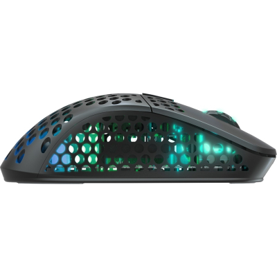 Бездротова, але надлегка. З конструкцією, що дає змогу відрегулювати розподіл ваги. Оскільки центр тяжіння змінюється залежно від того, як ви тримаєте мишу, Xtrfy уможливили встановлення його під ваш власний хват. Перемістіть батарею в передню або задню частину, і ви матимете ідеально збалансовану мишу.