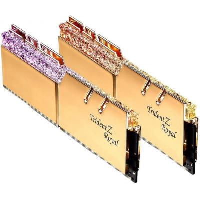 Trident Z Royal є новітнім членом сім'ї Trident Z. Завдяки кристалічному дизайну та ретельно продуманому відбиттю світла, кристалічна світлова панель розсіює кольори RGB у чудовому світлодіодному освітленні. Відбиваючи дизайн світлової панелі високого класу, тепловідвідники з полірованого алюмінію срібного кольору охолоджують модулі пам'яті в класичному дизайні Trident Z tri-fin.