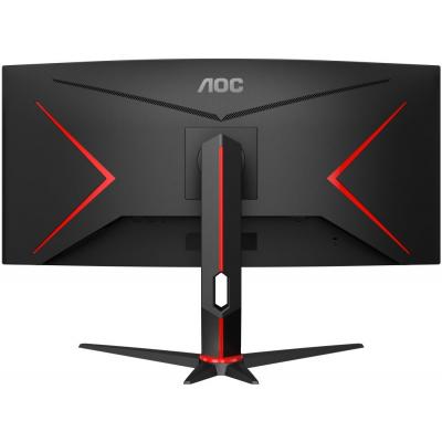 Монітор AOC CU34G2/BK вироблено в корпусі чорного кольору з вишуканою підставкою, червоними декоративними вставками, тонким профілем і вузькою рамкою.
