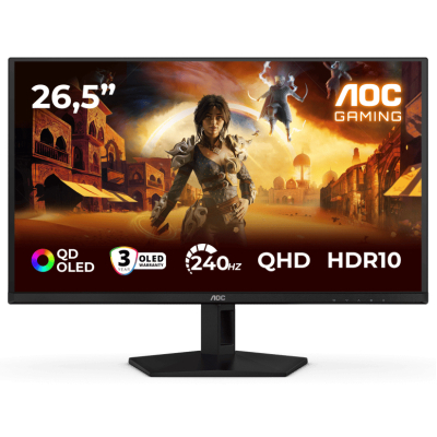 26.5", QD-OLED, 2560 x 1440, 240 Гц, 16:9, 400 кд/м2, 1 500 000:1, 63 Вт, 1 х HDMI, 1 х DisplayPort, 1 х 3.5мм Mini-Jack, 61 х 46 х 19 см, VESA - 100x100 мм, немає, 4.95 кг, червоний, чорний