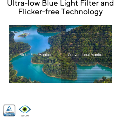 21,45-дюймовий безрамковий монітор із роздільною здатністю Full HD (1920 x 1080) з панеллю та широким кутом огляду 178°. Технологія SmoothMotion: частота оновлення 100 Гц і час відгуку 1 мс (MPRT), підтримка VRR). ASUS DisplayWidget Center – застосунок, який дозволяє налаштовувати параметри монітора за допомогою миші, а не кнопок на моніторі. Монтаж на стіну за допомогою VESA-сумісного кріплення. Технологія ASUS Eye Care – фільтрація синього світла та мінімізація мерехтіння, сертифіковані незалежною лабораторією TUV Rheinland.