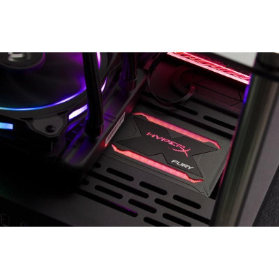 HyperX Fury RGB SSD. Висока продуктивність і стильна RGB підсвічування. Переваги: RGB підсвічування з динамічними світловими ефектами. Синхронізація підсвічування з іншими пристроями. 3D NAND. Висока продуктивність. RGB підсвічування з динамічними світловими ефектами. HyperX Fury RGB SSD не тільки допоможе підняти продуктивність геймерской системи, але і додасть їй неповторний зовнішній вигляд.