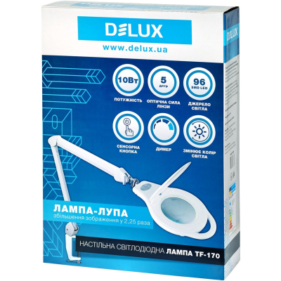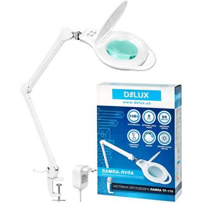 - Кріплення до стола фіксує лампу-лупу на будь-якій плоскій поверхні, максимальна товщина плоскої поверхні, на яку може бути закріплена струбцина, становить 10 см