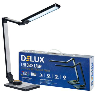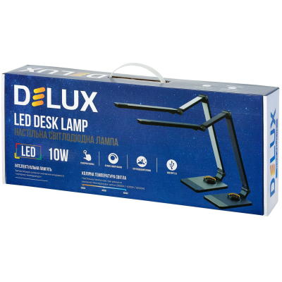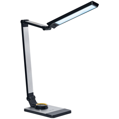 Тип лампи - світлодіодні, Підходить для - будинки і інтер'єру, для передпокою, для спальні, для вітальні, для кабінету, для офісу, для дитячої, Тип використовуваної лампи - світлодіодна (LED), Cпосіб установки - ставиться на робочу поверхню, Спрямованість світла - вгору, вниз, в бік, має кут регулювання, вбудована (незамінна), Тип цоколя - без цоколя, 1, 550 Лм, 6000 К, 4000 К, 3000 К, Вимикач - сенсорний, так, Особливості - USB порт (для зарядки девайсів), нічник, з лампою у комплекті, Матеріал - пластик, Колір - чорний