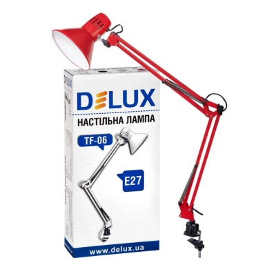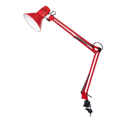 Стиль - класичні, Вид лампи - офісні, Тип лампи - світлодіодна (LED), лампа розжарювання, Кріплення - струбцина, змінна, Вимикач - кнопка на дроті, ні, ні, Матеріал - метал, Колір - червоний