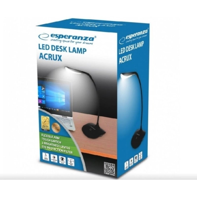 ESPERANZA Acrux ELD103K - сучасна модель світлодіодної настільної лампи. Світлодіоди лампи світяться яскравим білим світлом, схожим на денне світло, яке не напружує очі. Завдяки рухомому кронштейну ви можете повернути його та встановити під будь-яким кутом.