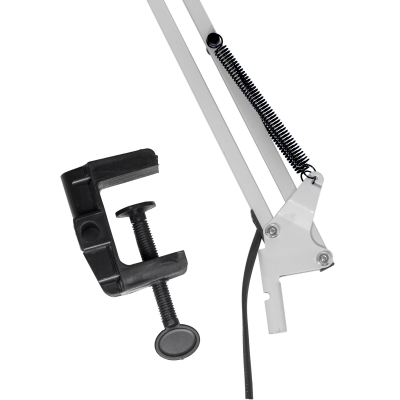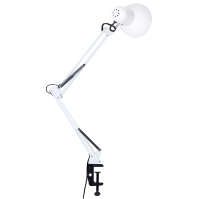 Стиль - модерн, Вид лампи - офісні, Тип лампи - світлодіодна (LED), лампа розжарювання, Кріплення - струбцина, вбудована (незамінна), Вимикач - кнопка на дроті, ні, так, Матеріал - метал, пластик, Колір - білий