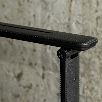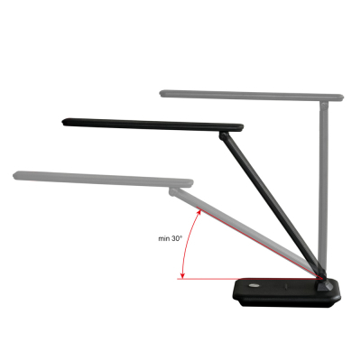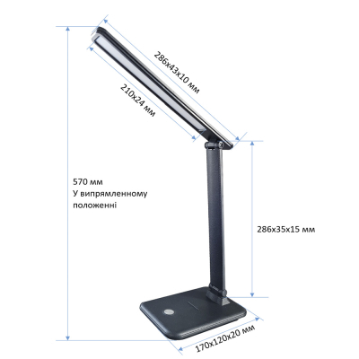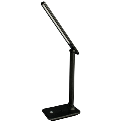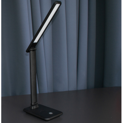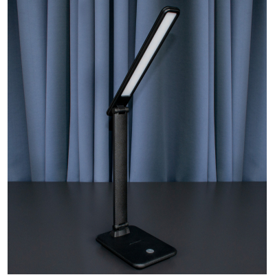 Стиль - модерн, Вид лампи - офісні, Тип лампи - LED-стрічка, Кріплення - підставка, вбудована (незамінна), Вимикач - кнопка на корпусі, ні, так, Особливості - підставка для гаджета, Матеріал - метал, пластик, Колір - чорний