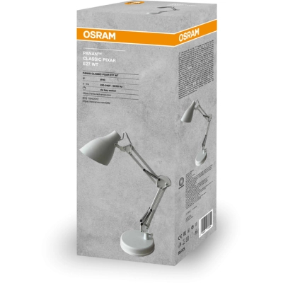 Настільна лампа LEDVANCE PANAN CLASSIC PIXAR E27 у білому кольорі поєднує класичний дизайн із сучасною функціональністю. Завдяки стандартному патрону E27 вона сумісна з різними видами лампочок, включаючи світлодіодні, незалежно від їхньої потужності та світлової температури. Максимальна потужність лампочки розжарювання становить 40 Вт. Її лаконічний та стильний вигляд гармонійно впишеться у будь-який інтер'єр, надаючи робочому простору елегантності.