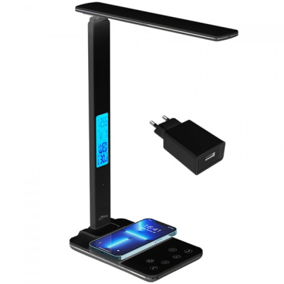 Подбайте про високий рівень заряду свого смартфона – настільна лампа Media-Tech LEDITOU MT222K оснащена індуктивним зарядним пристроєм потужністю до 15 Вт, який розміщений у її підставці.Вбудований годинник з функцією будильника та термометр відчутно розширяють функціонал лампи – слідкуйте за часом та температурою повітря робочого середовища на РК-дисплеї, розташованому на кронштейні.
