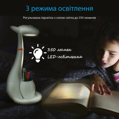 Цей світлодіодний настільний світильник може висвітлити будь-який темний простір у вашому будинку та дати відчуття безпеки вашій дитині. Світло, що випромінюється світлодіодними лампами, нейтральне й захищає дитячі очі від шкідливого впливу. Безпека перевірена й корпус виробу захищений від несанкціонованого доступу, щоб захистити маленькі пальчики. Легко змінювати інтенсивність, теплоту світіння натискаючи сенсорну кнопку на «оці тварини», так що ваша дитина матиме ідеальне світло для своїх занять, читання або відпочинку.