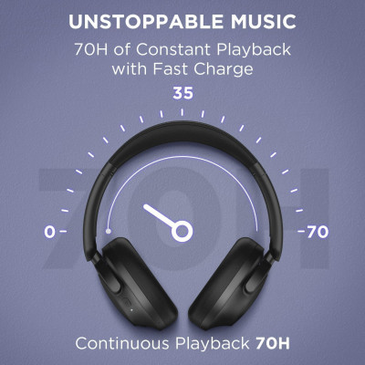 Повністю заряджені навушники з відключеним шумозаглушенням працюють без підзарядки до 70 годин, з включеним шумозаглушенням цей час обмежено 50 годинами - це один із найкращих показників по галузі. А за допомогою швидкого заряджання ви зможете забезпечити до 5 годин відтворення всього за 5 хвилин на підзарядці.