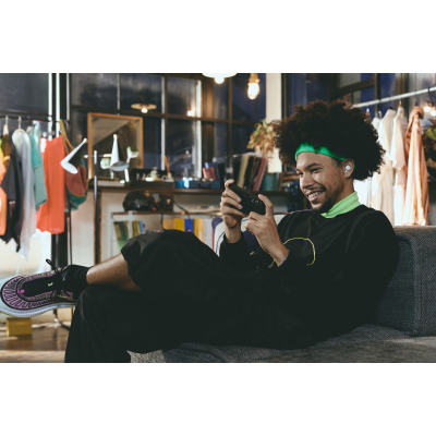 Якщо ви шукаєте інші варіанти розваг, окрім музики та фільмів, навушники LinkBuds Open обладнано новими датчиками й технологією просторового звучання, що забезпечують занурення у звук ігор із доповненою реальністю, як-от Ingress від Niantic. Під час гри в Ingress із вушними вкладками LinkBuds Open матриця й технології просторового звучання дарують нові відчуття: завдяки відстеженню руху голови звук передається з різних напрямків, ідеально синхронізуючись із подіями, що відбуваються на екрані.