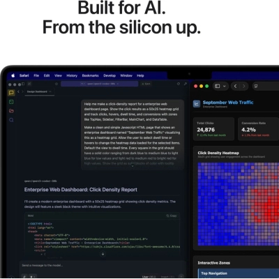 Apple silicon та кожна ключова підсистема, яка його забезпечує, розроблені з урахуванням AI — створюючи платформу, що повністю об’єднує апаратне забезпечення, програмне забезпечення та екосистему. Тому ви можете запускати складні AI-завдання безпосередньо на пристрої з неймовірною енергоефективністю. І, як завжди, безпека та конфіденційність закладені в основу, а не додані пізніше.