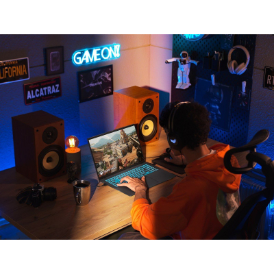 Залишайся на рівні з професійними гравцями завдяки екрану FHD з частотою 144 Гц. Він забезпечує плавний геймплей без затримок, смикань чи розривів зображення. А співвідношення екрана до корпусу — 89% — дарує ще глибше занурення в гру чи перегляд відео без втрати портативності.