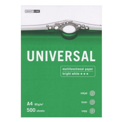 Офісний папір Smart Line UNIVERSAL – прекрасний варіант для друку на струменевих і лазерних принтерах в умовах офісу. Папір прекрасно підходить для двостороннього друку завдяки високому ступеню непрозорості: текст не просвічує на зворотну сторону аркуша. Точність передачі кольору досягаються завдяки високій білизні та яскравості паперу. У процесі друку не утворюється паперового пилу, що позитивно позначається на експлуатаційних властивостях техніки і продовжує її термін експлуатації. До того ж через хорошу щільність сторінки не застряють і не деформуються в принтері....