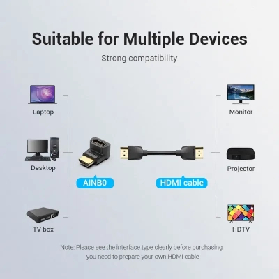 Перехідник HDMI M to HDMI F 90° corner black VENTION (AIOB0)