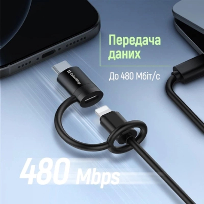 для передачі даних, Роз'єм 1 - USB Тип C, роз'єм 2 - Lightning, довжина кабеля - 0.1 м