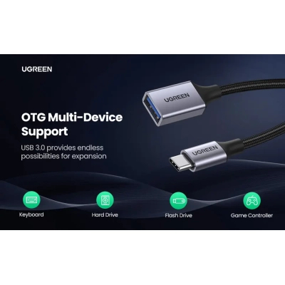 Перехідник OTG USB 3.0 AF to USB-C 0.1m US378 black Ugreen (70889)