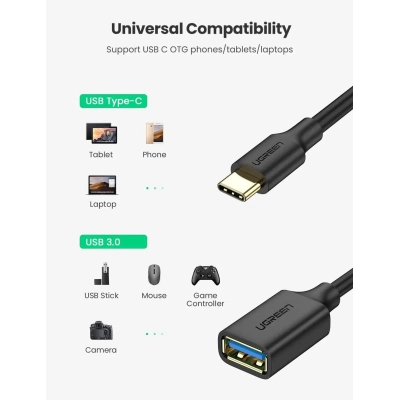 Перехідник OTG USB 3.0 AF to USB-C US154 black Ugreen (30701)