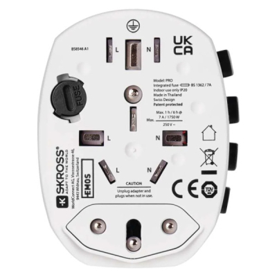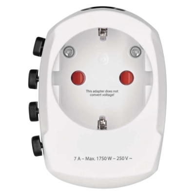 Збираєтеся у відпустку за кордон? Не забудьте взяти з собою дорожній адаптер, щоб не стикнутися з різними типами розеток і легко під'єднати пристрій до електромережі. Адаптер підходить і для потужніших пристроїв, таких як ноутбук або фен (напруга / струм: 250 В змінного струму / 7 А макс.). Адаптер, розроблений у Швейцарії, гарантує безпечну якість у подорожах.