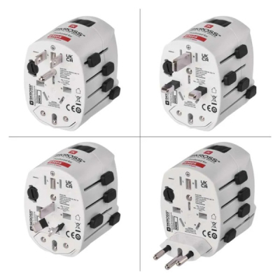 Незалежно від того, чи має ваш прилад швейцарську або французьку вилку, туристичний адаптер дозволяє безперешкодно під'єднатися до електромережі. Адаптер призначений для роботи з трьома типами вилок: двополюсною вилкою EURO (тип C), триполюсною французькою вилкою SCHUKO (тип E) та триполюсною вилкою SCHUKO (тип F).