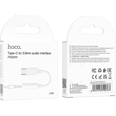 Перехідник USB-C M to 3.5mm F LS35 white HOCO (6931474790767)
