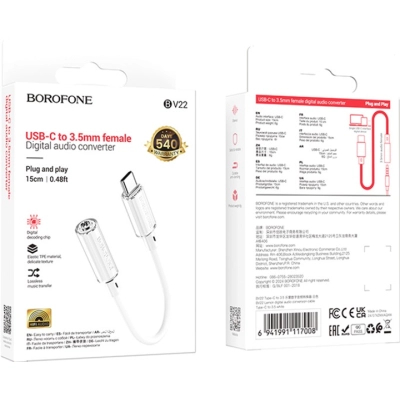 Перехідник USB-C to 3.5mm F 0.15m BV22 white BOROFONE (6941991117008)