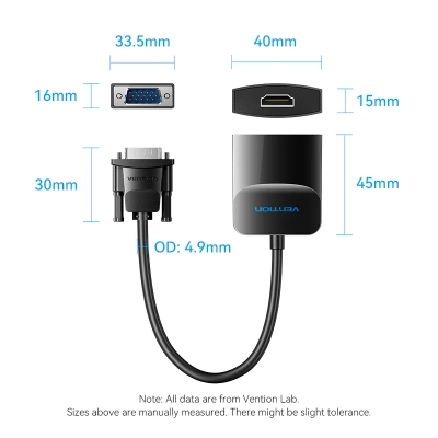 Перехідник Vention VGA-HDMI – це конвертер, який перетворює аналоговий VGA відео сигнал на цифровий HDMI сигнал, плюс аудіо.