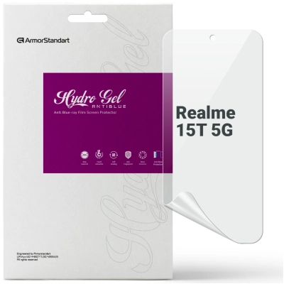 Призначення - для телефону, Вид покриття - гідрогелева, Сумісність з моделями - Realme 15T 5G, Підходить для телефонів з діагоналлю - 6.57", Особливості - Anti-Blue Light, Кількість в упаковці - 1 шт