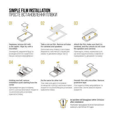 *При встановленні плівки можна використовувати звичайну банківську картку, але важливо це робити до зняття транспортувального шару плівки, інакше гідрогелева плівка буде пошкоджена.
