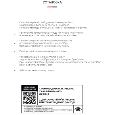 - Очистите экран от загрязнений и обезжирьте его при помощи влажной салфетки в комплекте. Не дотрагивайтесь к внутренней части защитного покрытия.