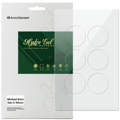 Призначення - для смарт годинника, Вид покриття - захисний, гідрогелева, Сумісність з моделями - Michael Kors Gen 6 44mm, Кількість в упаковці - 6 шт