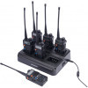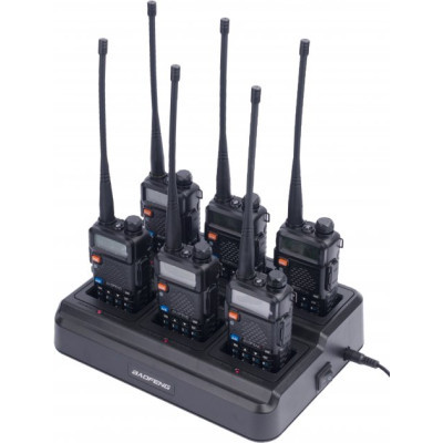 Використання 6-місного зарядного пристрою дає змогу заряджати одночасно до 6 радіостанцій/акумуляторних батарей, ніж дасть заощадити простір для процесу заряджання (завдяки компактності конструкції), зменшити необхідну кількість розеток для під'єднання електроживлення до 1, спростить контроль за збережністю і працездатністю радіостанцій/акумуляторних батарей.