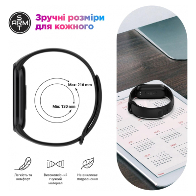 Ремінець має високу міцність і комфортне використання. Виготовлений з водовідштовхувального матеріалу, він здатний витримати значні навантаження і легко очищається від бруду. Таким чином, ви можете активно використовувати ваш Mi Band всупереч непогоді.