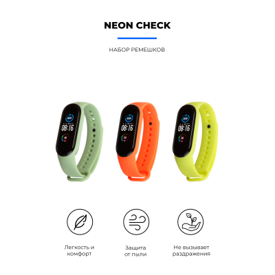 Ремінець до фітнес браслета Armorstandart комплект 3шт Xiaomi Mi Band 7/6/5 Neon Check (ARM57626)