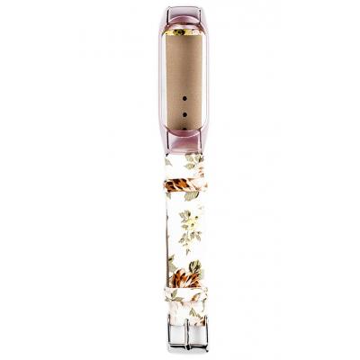 Ремінець до фітнес браслета XoKo Leather для Xiaomi Mi Band 3/4 Flowers White (XK-XM-LT-FLW)