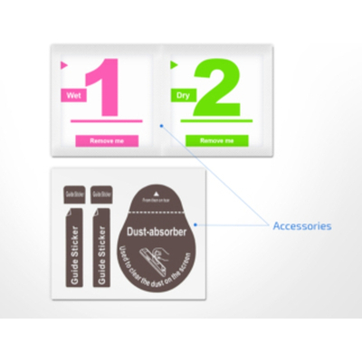 не спотворює передачу кольору при будь-якому освітленні, твердість 9Н, толщина 0.33 мм, уф-стабільний клей низької в'язкості, 100% прозорий, надійно без бульбашок фіксує скло на екрані