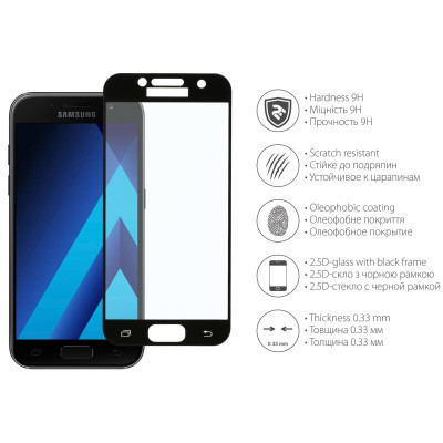 Призначення - для телефону, Вид покриття - протиударне, Сумісність з моделями - Samsung Galaxy A3 2017, Особливості - олеофобне покриття, поглинання ударів, заокруглений край 2.5D, стійкість до подряпин, надпрозоре, антиуламочний захист, ультратонке, антиблікове покриття, Кількість в упаковці - 1 шт