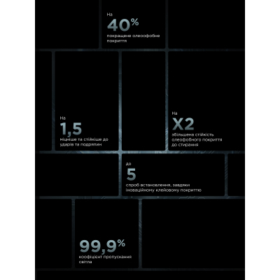 Захисне скло має олеофобне покриття AF преміумкласу, що запобігає відбиткам пальців та забрудненню.