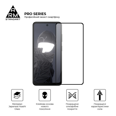 Захисне скло Armorstandart Pro Series має оптимальні габарити та товщину на 0,3 мм. Передбачено вирізи під усі датчики, камери та роз'єми.