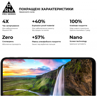 Защитное стекло Armorstandart Pro Series имеет оптимальные габариты и толщину в 0.3 мм. Предусмотрены вырезы под все датчики, камеры и разъемы.